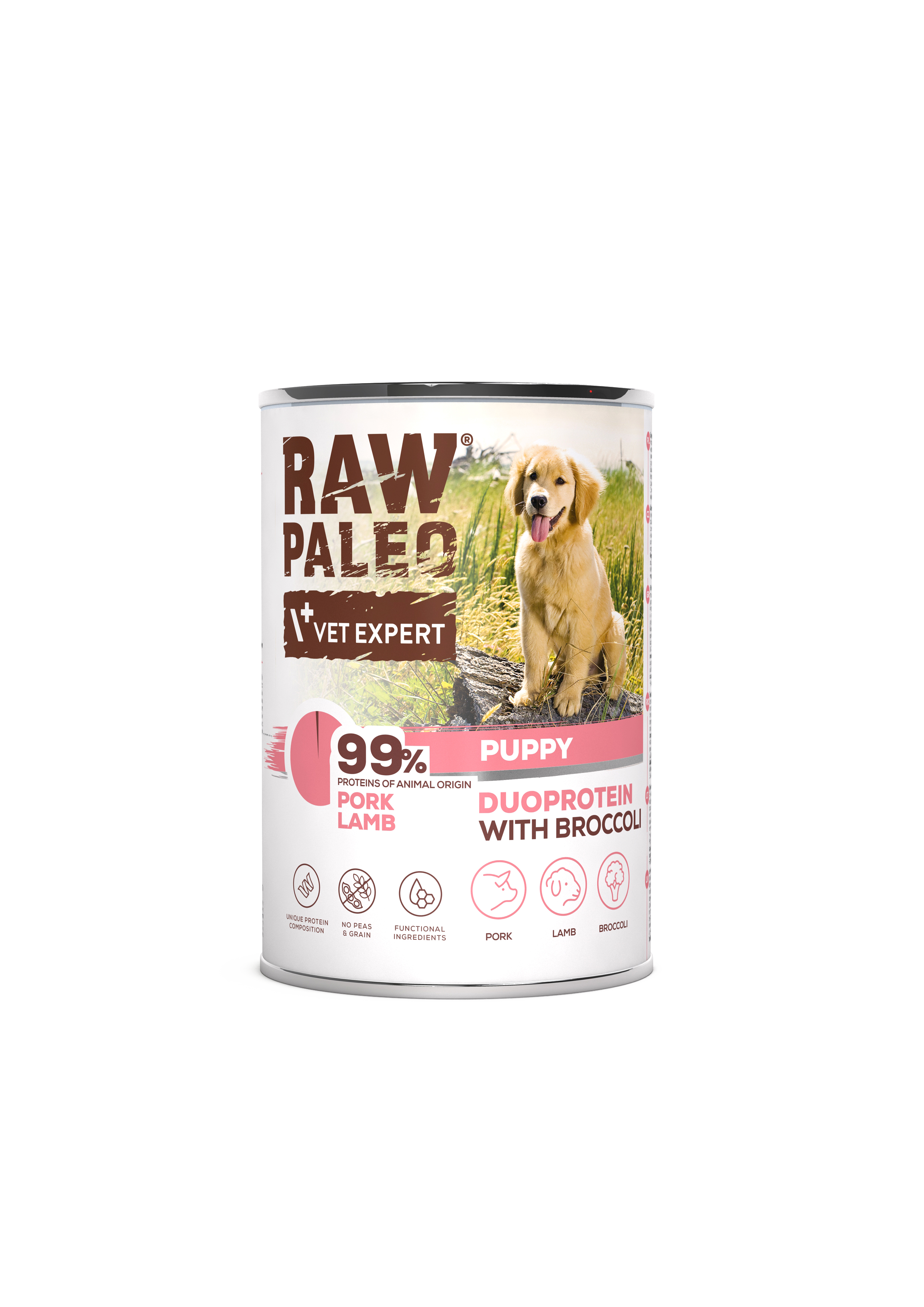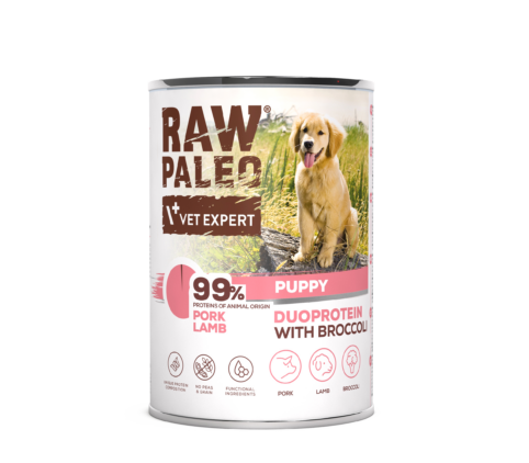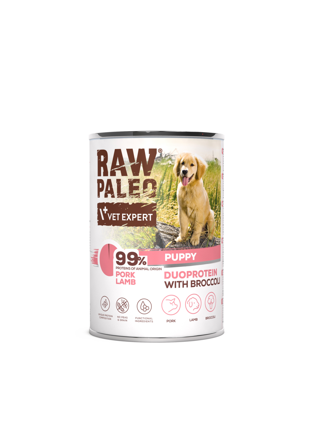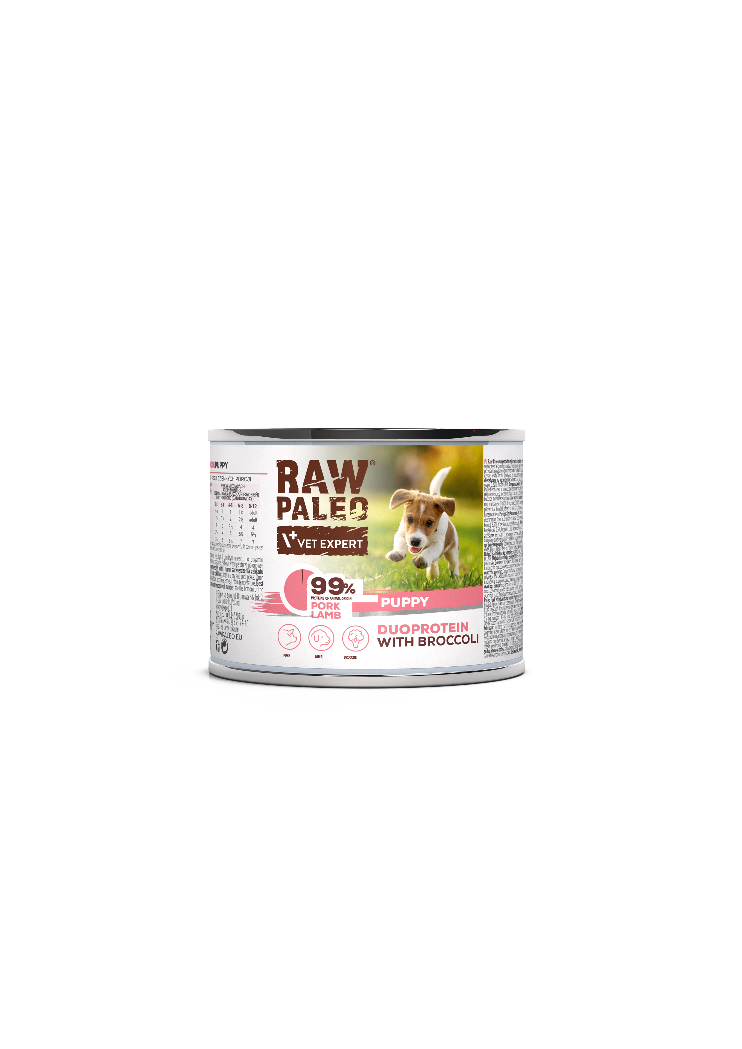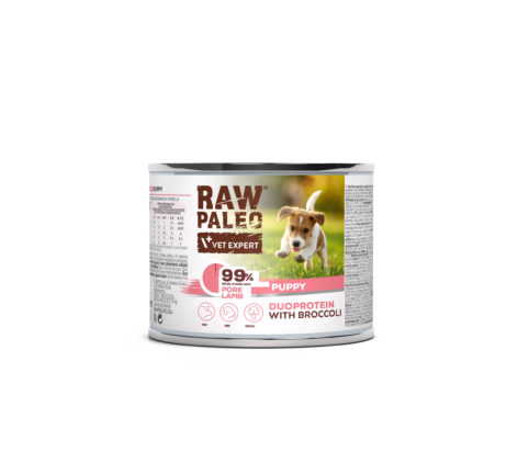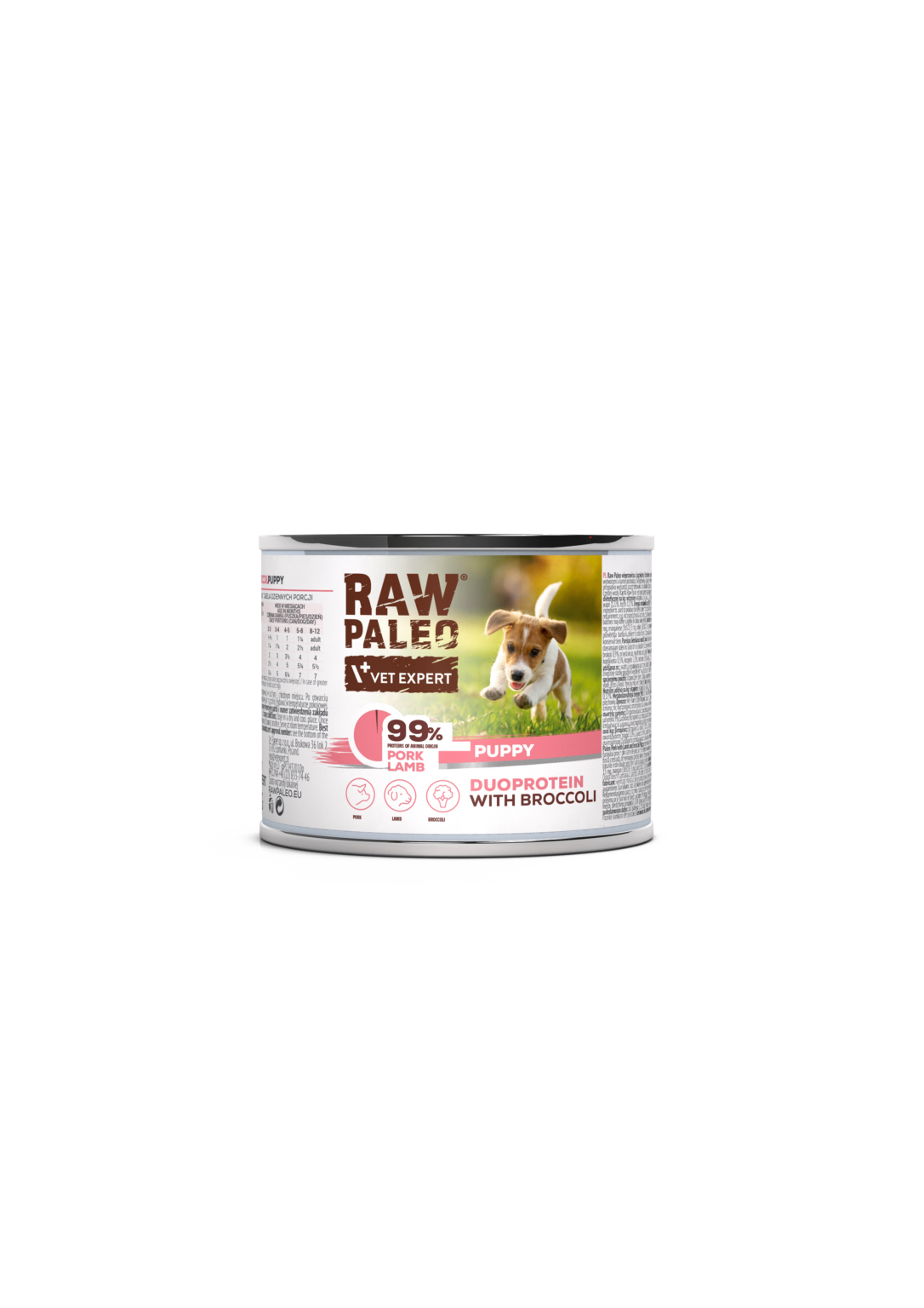 Sudėtis: kiauliena (mėsa, skrandukai, plaučiai) 34 %, ėriena (mėsa, subproduktai) 26 %, brokoliai 8,9 %, mineralai, nerafinuotas rapsų aliejus.