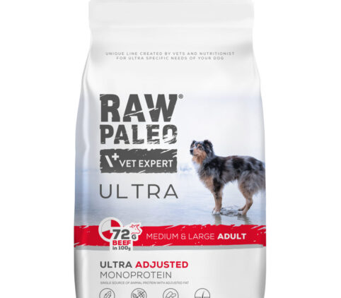 Sudėtis (g/100 g): jautiena 72 g/100 g (šviežiai paruošta jautiena (37 g/100 g)*, džiovinta jautiena (25 g/100 g), jautienos riebalai (10 g/100 g)), batatai, bulvės, šviežiai paruoštos morkos (5 g/100 g)*, mineralai, daržovių padažas, lašišų aliejus (0,5 g/100 g), fruktooligosacharidai (0,05 g/100 g), mananoligosacharidai (0,035 g/100 g), agurklių aliejus (Borago officinalis) (0,015 g/100 g).
